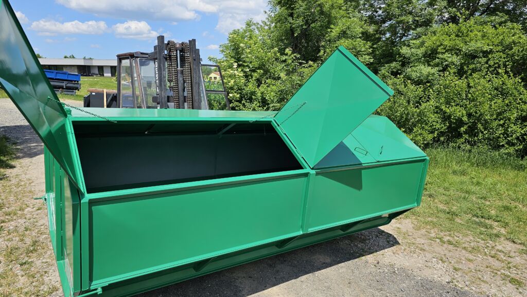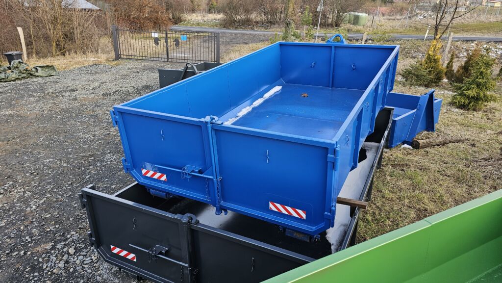 Nabízíme prodej hákových kontejnerů všech typů od suťových, valníkových se sklopnými a odnímatelnými boky na plato, holé plato, vysoké kontejnery, síťové KARI na dřevo a lehké materiály, chodníkové úzké i speciální Abroll, vše dle specifikací zákazníka, včetně jiných výšek háku.